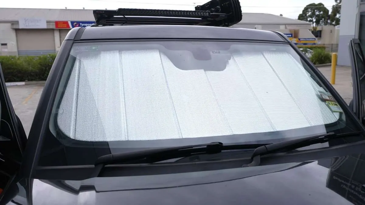 Note: Our custom sun shades block out a significant amount of light and UV rays that enter from the front windscreen, however due to the angle of the front windscreen and additional sensors or different mirror shapes/sizes available for different models, there may be slight gaps around your rear-view mirror or sides to allow the sun shade to fit.