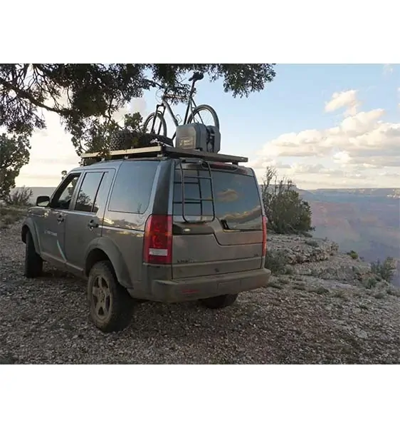 A ladder that clips over the top of the Discovery 3 & 4’s / LR3, LR4's rear door and bolts behind the license plate.