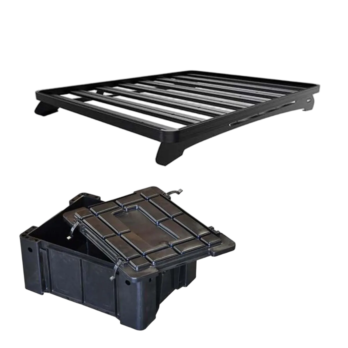 This 1560mm/61.4" long full-size Slimline II cargo roof rack kit contains the Slimline II Tray, Wind Deflector and 2 Foot Rails to mount the Slimline II Tray to your For Land Rover Range Rover Evoque.