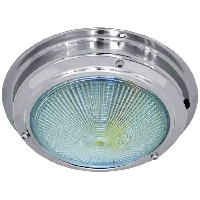 Polished 304 grade stainless steel dome lights with 20 x 0.2 watt 50,000 hour life LED's in each light with an effective brightness of 84 lumen. The LED's are closer together in the small light, giving a more concentrated and focused light. The medium light has the LED's spread a little more for a wider light range, and the large light has them spread further, giving a much wider spread of light. Black rocker switch on base. 12 volt only - 84 lumen.