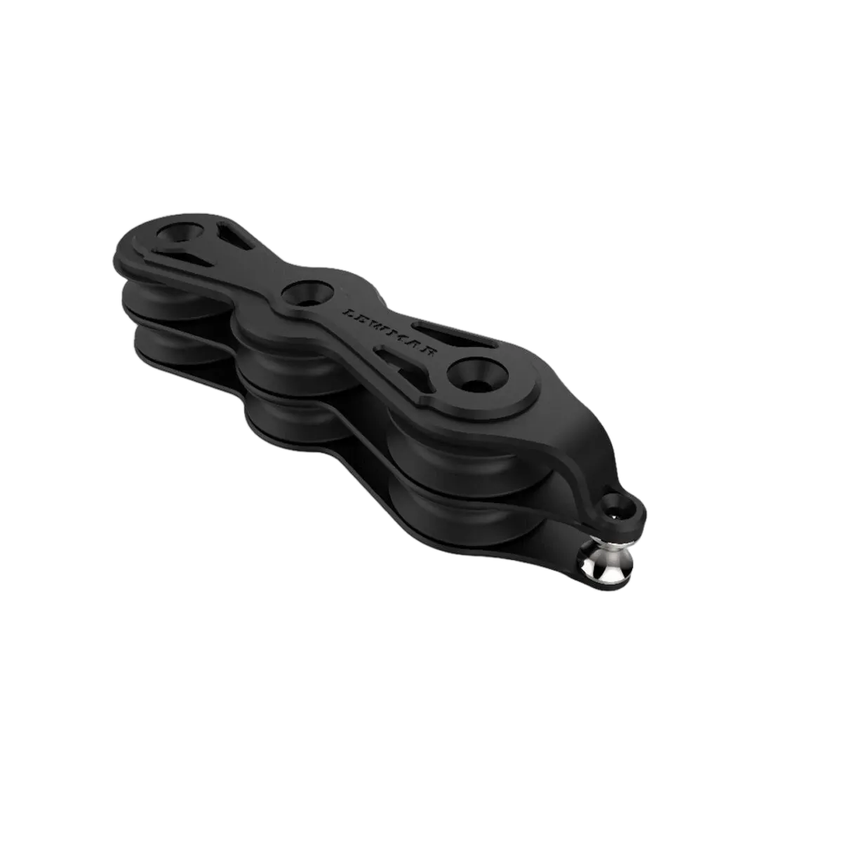 High load double stacked or single row organisers with wide rope entry between 60mm sheaves to run two lines. Bushed sheaves with side thrust ball bearings reduce friction under load.