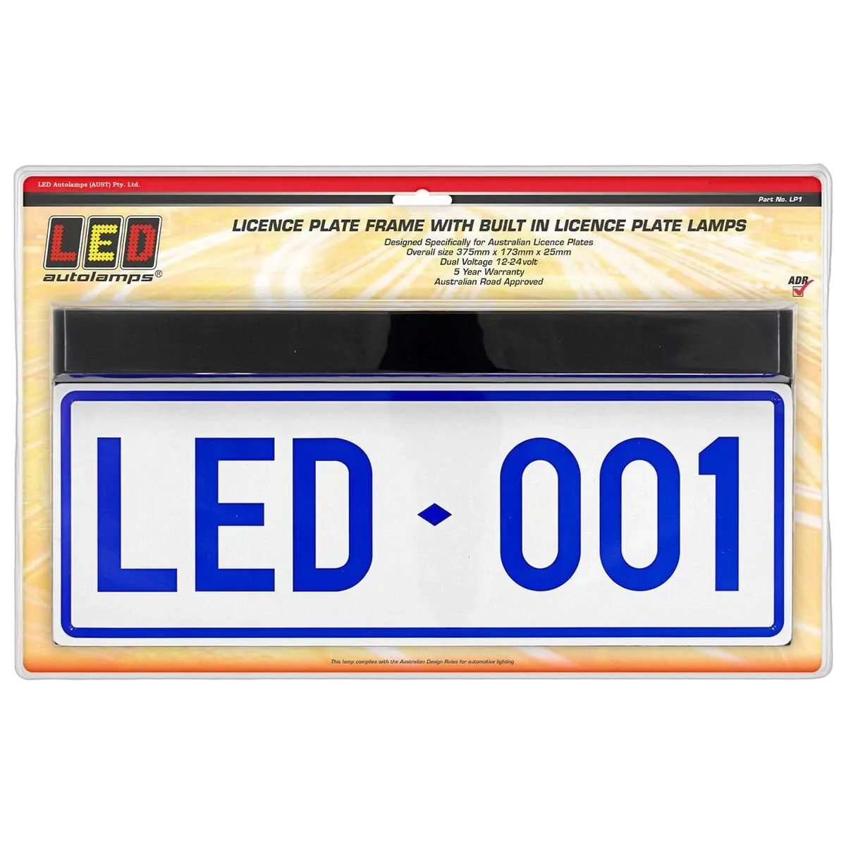 Licence Plate Frame With 6 Leds. Blister Pack With 1 Metre Wire And Clip In Connector To Suit Led Generation Ii Lamps. Adr Approved Crn No 39611