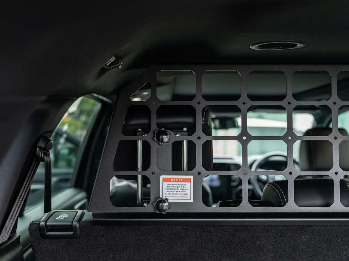 Great for stopping your camping gear flowing into the passenger area when doing steep descents off road.