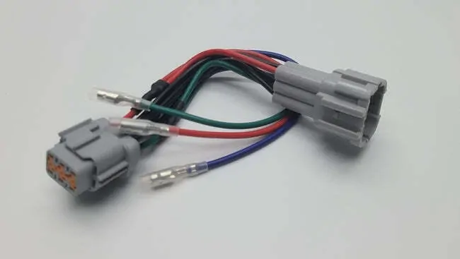 This patch harness has been made to integrate into the existing factory six pin headlight connector that is located on the lower back of the vehicle’s headlight assemblies.