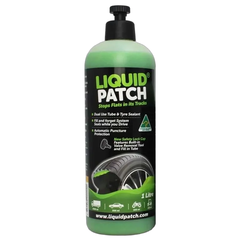 Liquid Patch is a fibre based puncture sealant, which immediately and permanently protects both tube and tubeless tyres against punctures in the tread area up to 6mm (1/4") in diameter. The repair occurs while you are driving and is permanent. Liquid Patch is also environmentally friendly, non flammable and non hazardous.