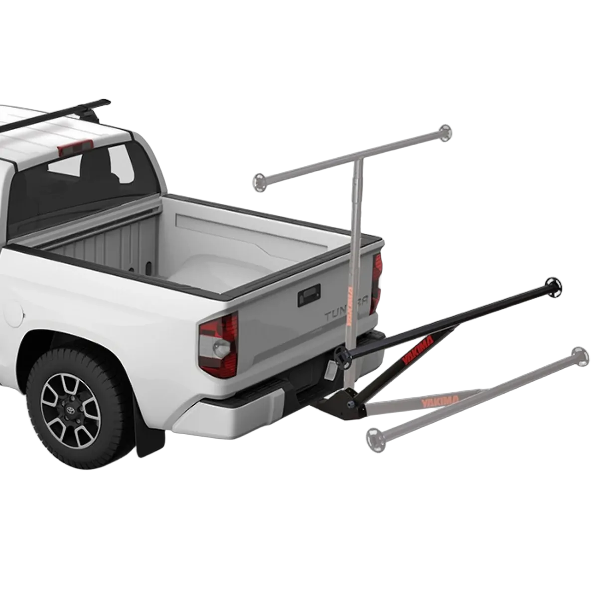 The LongArm truck bed extender easily extends the length of any truck bed up to 122 cm. Light and strong, the aluminium hitch mounted rack is the ideal solution for hauling fishing kayaks, boards, lumber, ladders and more. Adjustable to three distinct load-carrying positions and rated to carry up to 136 kg in lower positions, the LongArm takes your truck bed to the next level.