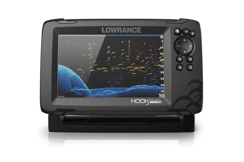 HOOK Reveal 7X, seven-inch display with SplitShot transducer, makes fishing easier, delivering powerful performance with proven fish-finding tools including, Autotuning Sonar, DownScan Imaging™, improved deep water performance and now FishReveal. Genesis Live mapping only.