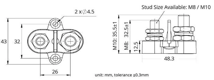 M8X32.5MM RED TWIN POWER POST 48V/200A S/S STUD & WASHER WITH SEPARATOR