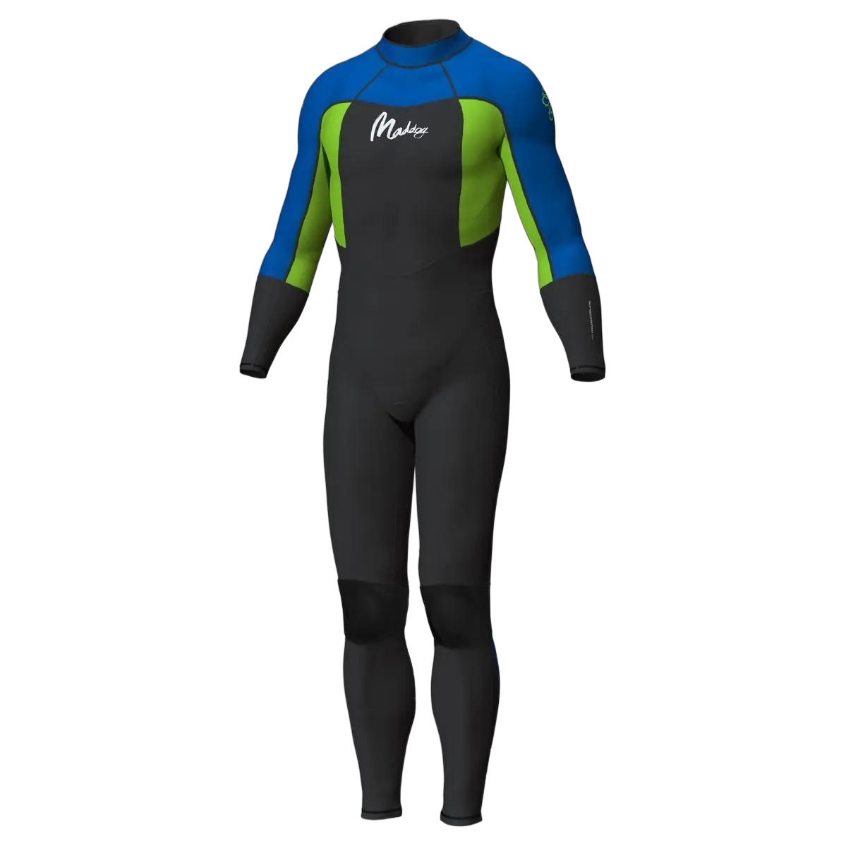 The Maddog boys superstretch steamer 3/2mm is a wetsuit designed for warmth in a lightweight suit at a low price. This suit includes 2mm panels under the arms and shoulders and flatlock stitching, as well as textured knee pads to provide grip and comfort in the surf.