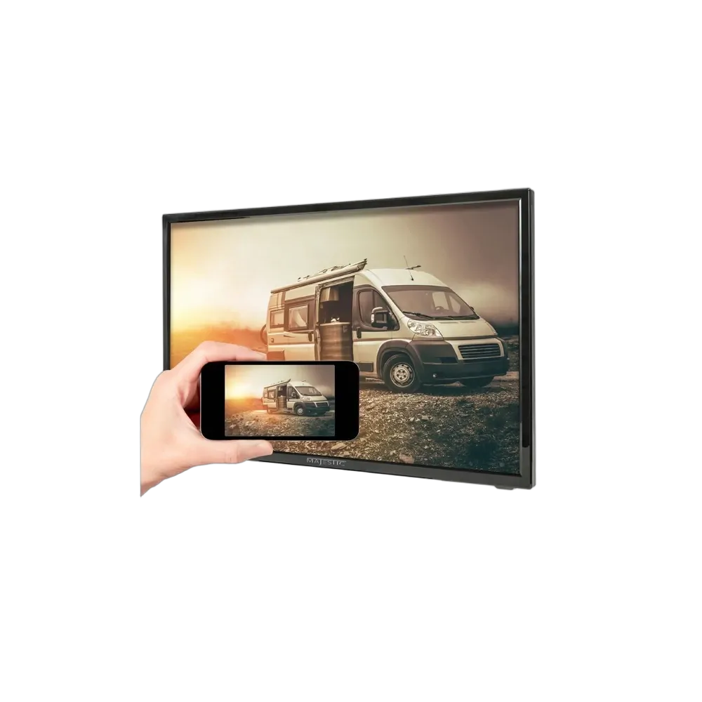 Powerful WiFi Receiver: As part of being a Smart TV and using the WiFi technology, Majestic has increased the power of the WiFi to give the TV the best chance of picking up the weakest signal and being able to give you the optimum performance. This gives you confidence when in a Caravan Park or Marina that you have the best chance of getting WiFi capabilities. However for those in areas whereby there is not WiFi you can simply connect the TV to your Sim Powered Phone or Tablet and use your data plan to stream through into the TV.