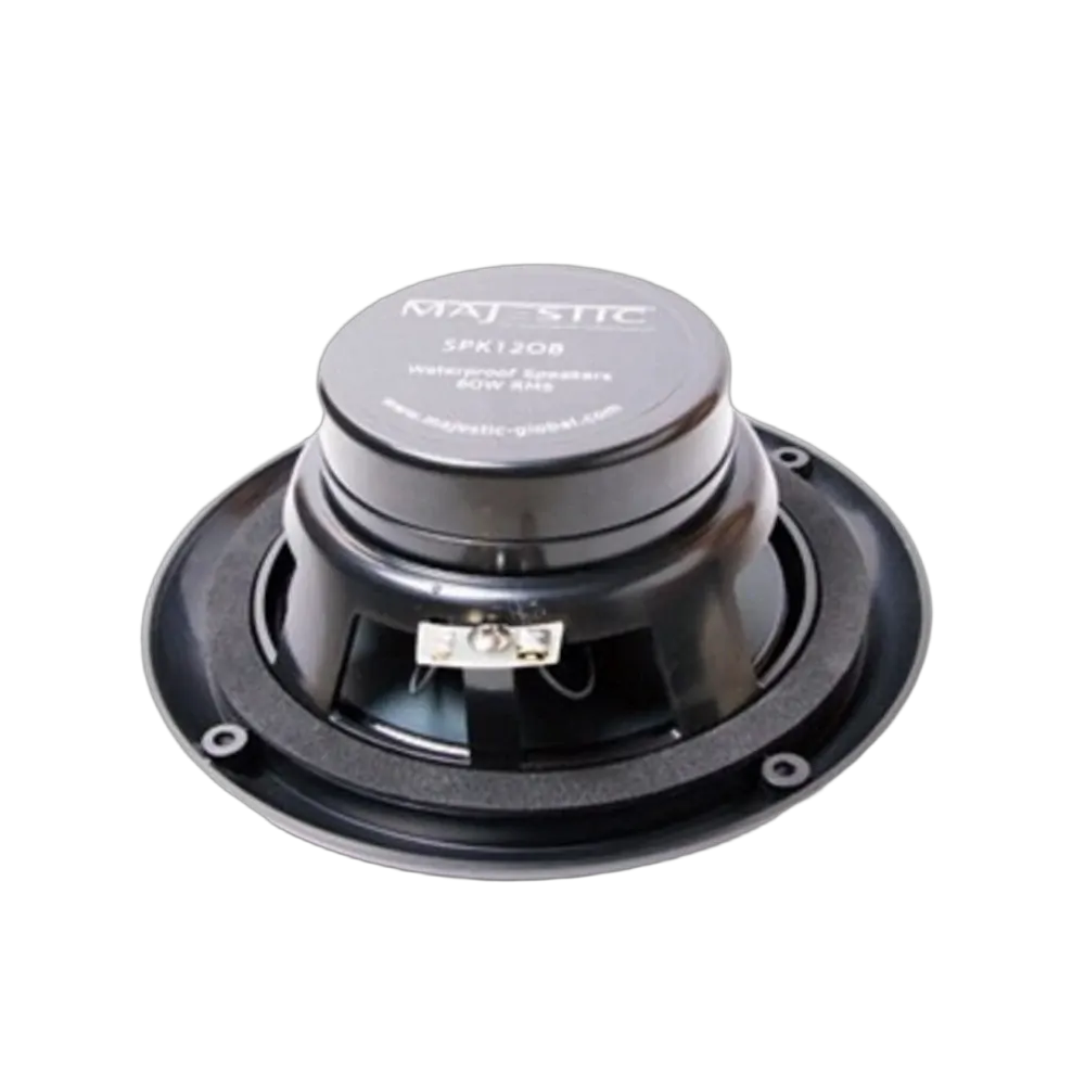 Output Power: The Majestic SPK120B 6 Inch Single Cone Marine RV Outdoor Waterproof Speakers are designed using high power magnets and coils to provide the best possible performance for a Marine Waterproof speaker. Using state of the art technology the combination of the magnets and coils allows a powerful 60W RMS per speaker or 120 Watts peak Music power per speaker in a waterproof housing.