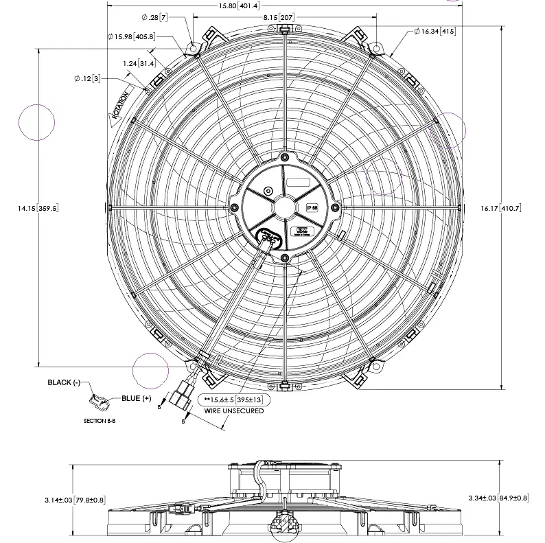 | M162K-24 16" 225w THERMO FAN DIMENSIONS | |