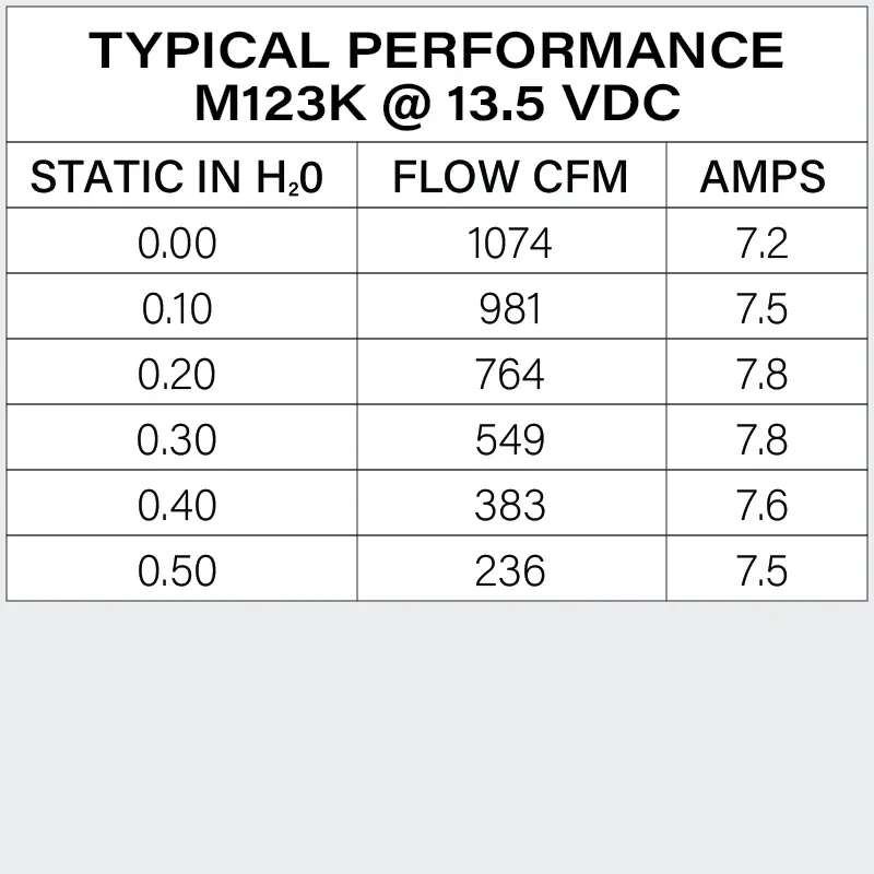 12 in., low profile, reversible “S” blade fan with 225 watt motor.