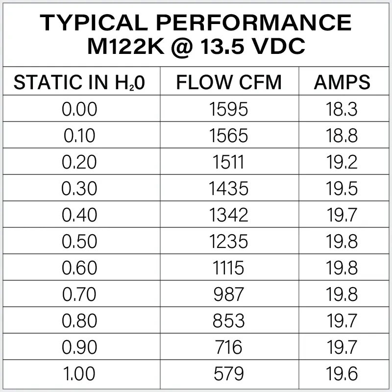12 in., low profile, reversible “S” blade fan with 225 watt motor.