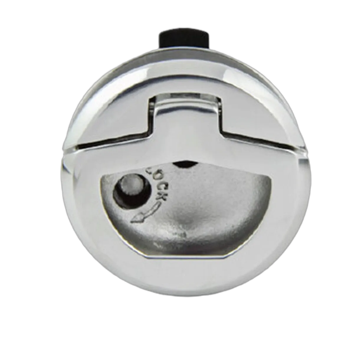 Marine Town Flush Catches - Stainless Steel Catch Flush Pull C/W Lock S/S 57mm Od 193202 Round low profile stainless steel flush pull catch, ideal for lockers, galley doors and drawers. Self latching with full handle finger pull release for ease of opening. Simple installation. Supplied with keeper. Available in locking or non-locking.2714 Accessories193229 Spare key