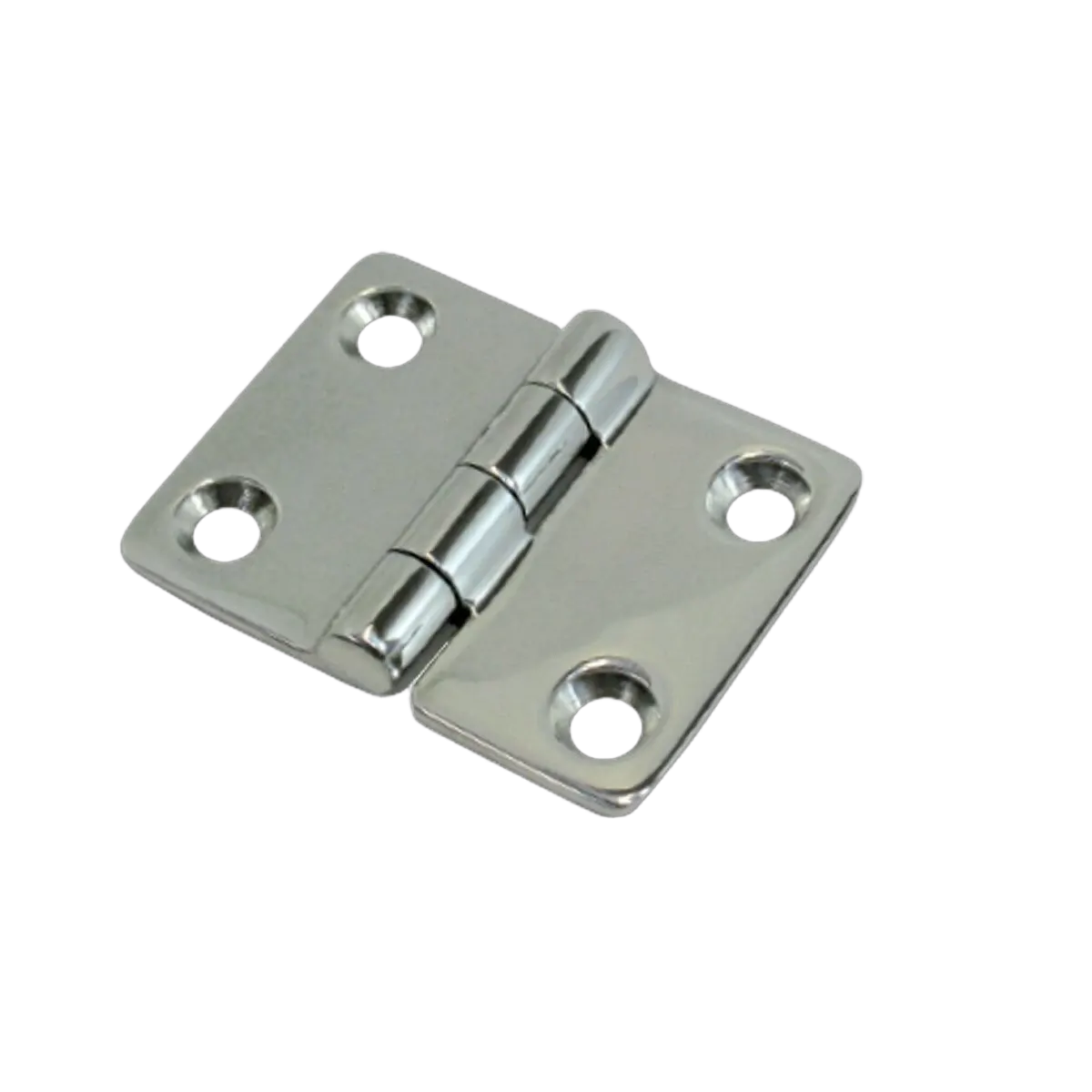 This range of hinges combine the durability of cast 316 grade stainless steel construction with low profile unobstructive design. The plates are only 3mm thick, yet have been tested to a break load of 1200kg. Hinge pins are not visible. They are welded at both ends and highly polished to blend with the hinge barrel. Because the pin is locked to one base plate and hinge barrel joint gap is kept to less than 0.2mm, there is minimal hinge play and rattle with engine vibration. 193471 has a flush service. Sold as a pair.