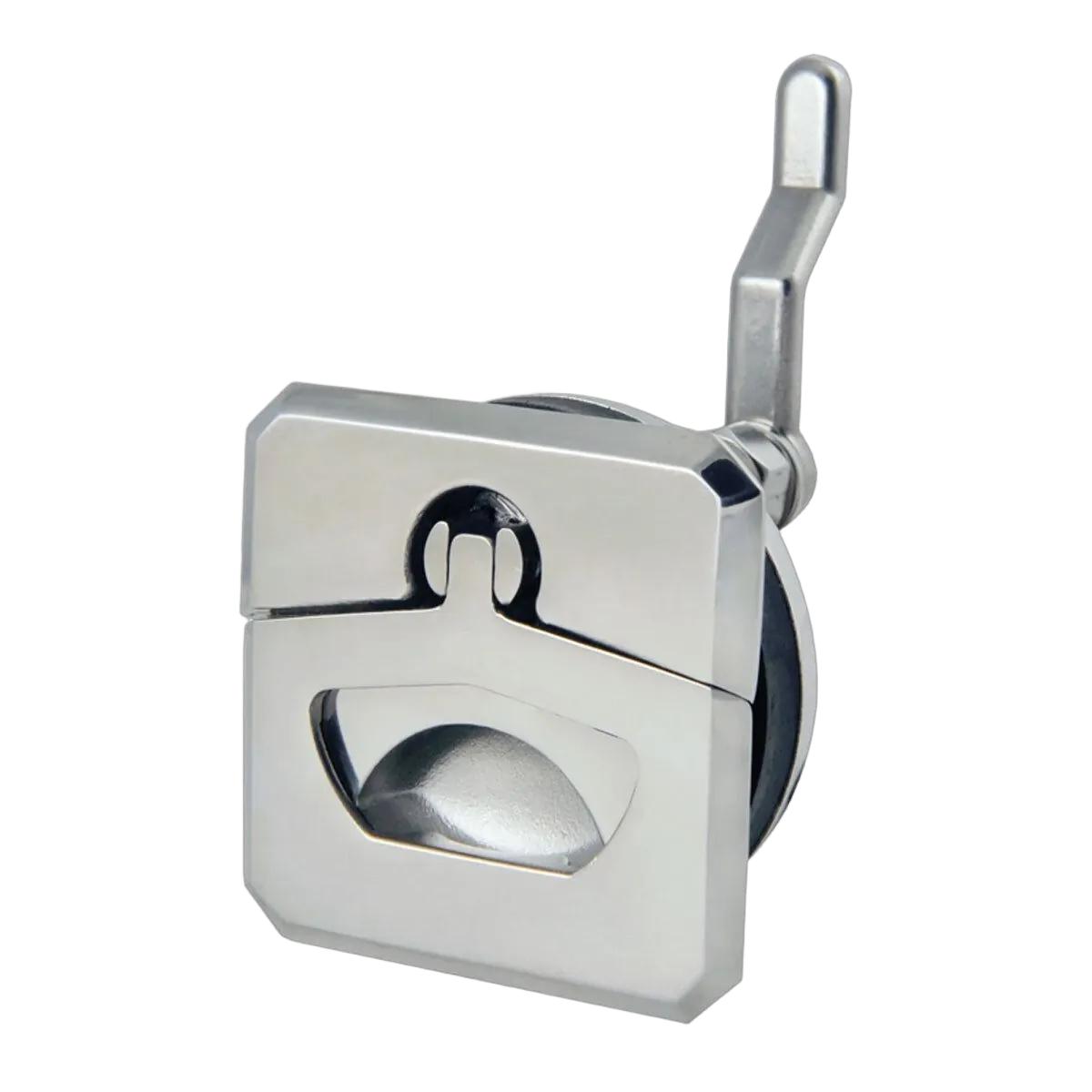 Square stainless steel lift ring latch with optional key lock mechanism. Simple single hole installation. Latch is operated by rotating full handle lift ring 180°. Watertight, anti-rattle design.