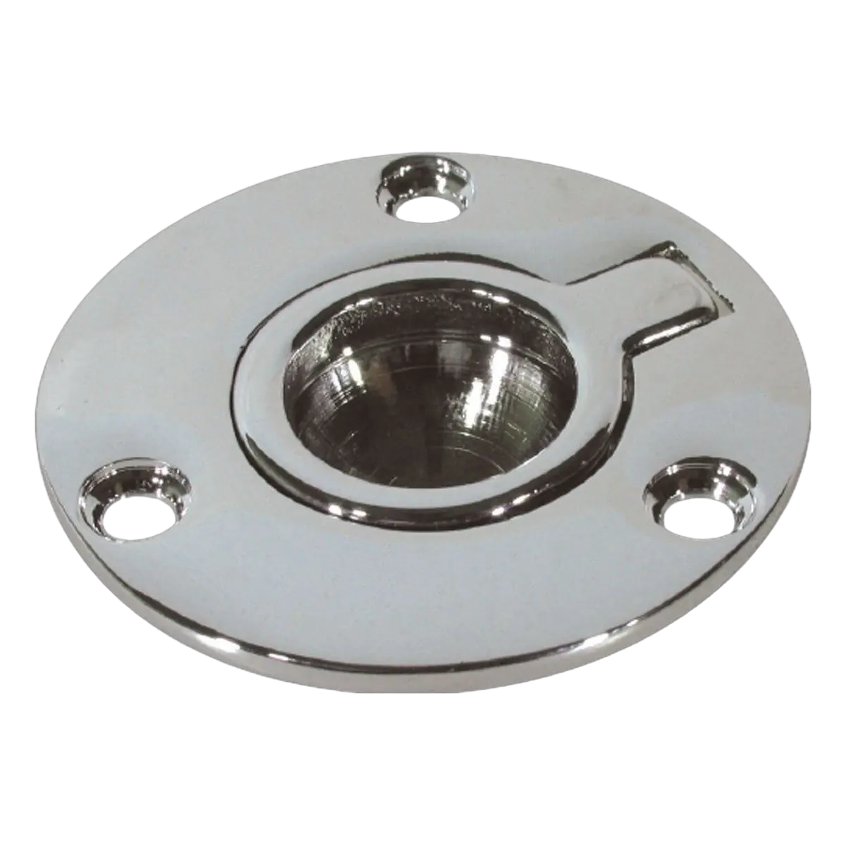Single finger flush ring pull in chrome plated cast brass. For lifting smaller size floorboards, hatches and similar.