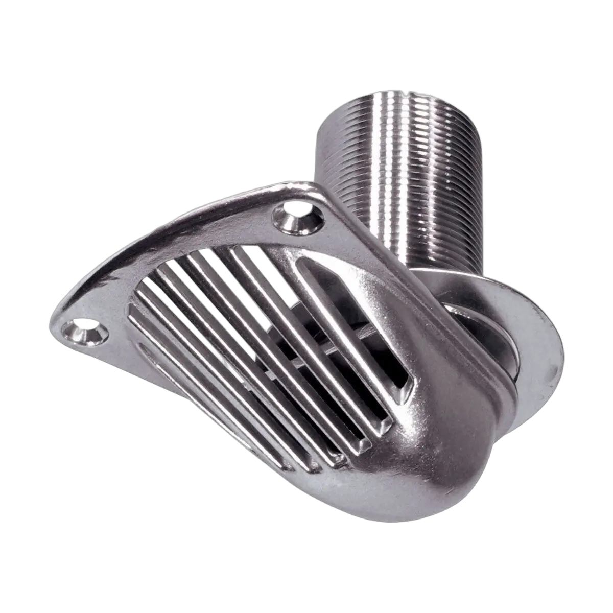 Combines a thru-hull skin fitting cast into a water scoop strainer. 316 grade solid cast construction. Earth/anode wire connection tab is included on 1/2″ to 1 1/2″ sizes. Suitable for survey.