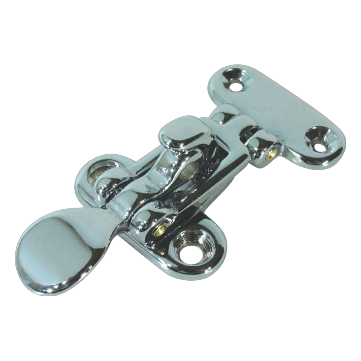 Marine Town Toggle Catch - 46mm Width 193246 Toggle Catch manufactured by Marine Town. Over centre cam Action catch with provision for up to 6mm padlock shackle. Available in cast 316 grade stainless steel (pictured above) or chrome plated cast brass construction. Part Number MaterialLengthWidthHeigthMount ScrewsMTN-193246Stainless Steel97mm46mm25mm4mm c/sMTN-193247Chrome Brass100mm46mm25mm4mm c/s