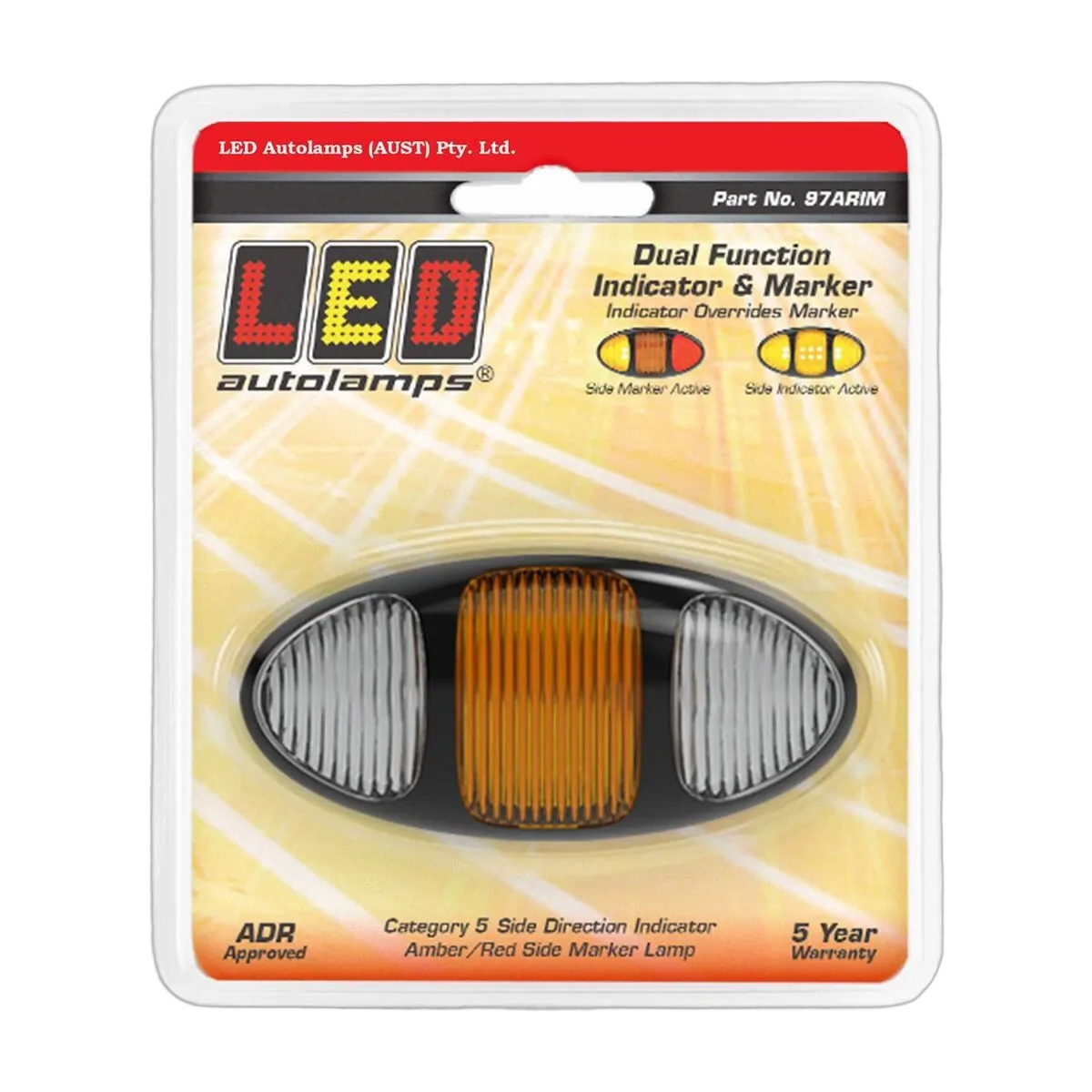 Twin Function Side Indicator With Amber/Red Side Marker, 3 Wire, Multivolt, Adr Approved, Black Bezel, Blister 99 X 47 X 28Mm