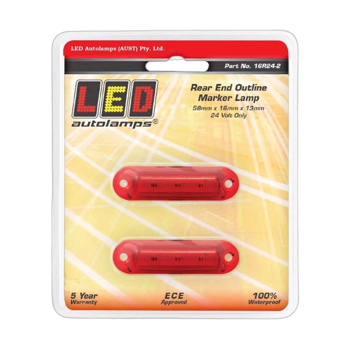 Rear Position Marker, 24 Volt Only, Super Small Design, 58Mmx16Mmx13Mm, Ece Approved, Blister Pack Of 2, 5 Year Warranty