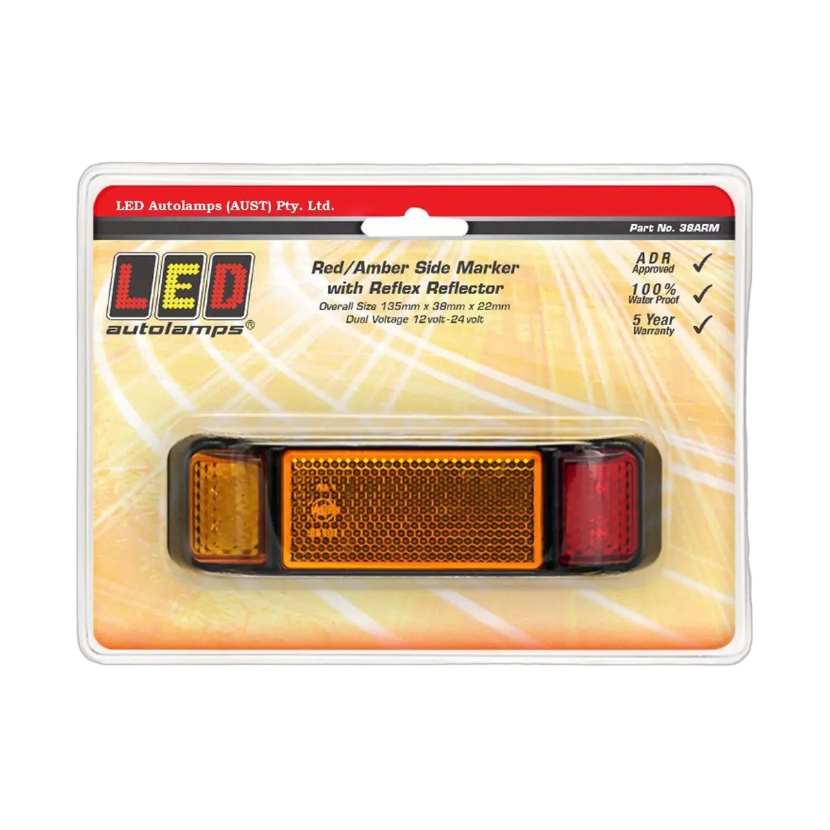 Red Amber Side Marker With Relector. 4 Led'S 135Mm X 38Mm X 22Mm With 30Cm Wire. Blister Pack. Adr Approved Crn No 40302.