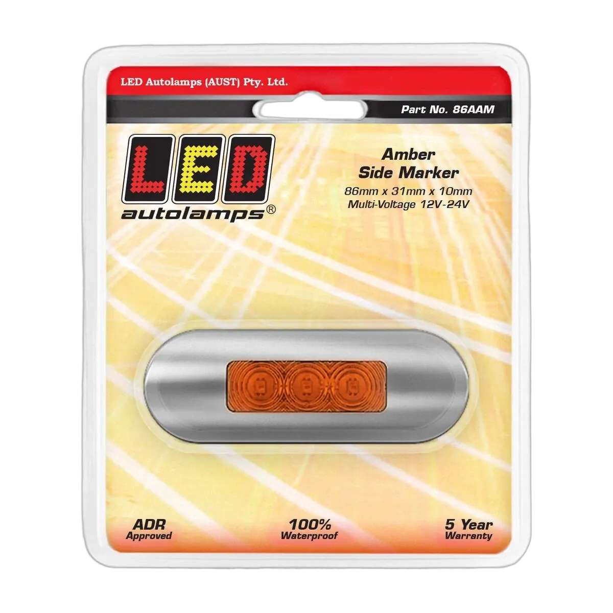 Amber Side Marker, Amber Lens Coloured Leds, Stainless Steel Bezel, 12-24V, 86X31X10Mm, Blister, Adr