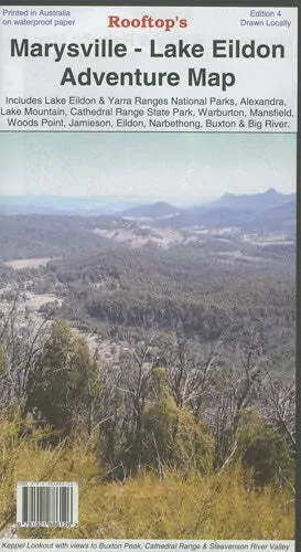 A double-sided map includes Lake Eildon & Yarra Ranges National Parks, Mansfield, Woods Point, Lake Mountain, Jamieson and more. Also features pictures of Murrindindi and Mansfield and individual town maps of Mansfield, Eildon, Alexandra, Marysville and Woods Point as well as Lake Mountain and Cathedral Ranges.