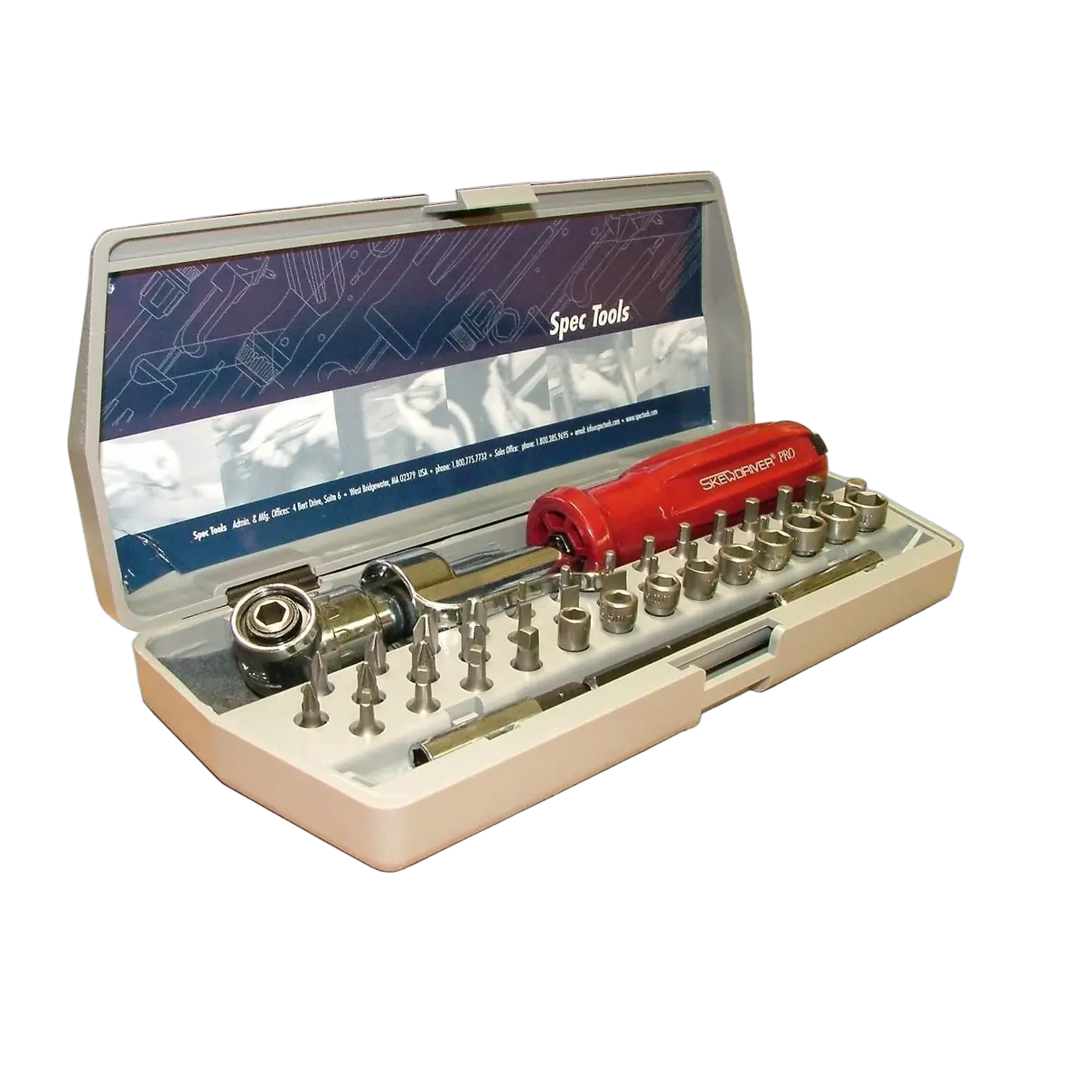 The Skewdriver Pro kit features an offset bit driver, a right-angle tool that’s perfect for removing the screws that secure some dash speaker grilles, getting to screws in hard-to-reach trim pieces, or working in tight quarters anywhere in your car or home. The kit includes the Skewdriver offset bit driver with its removable storage handle, 40 professional hardened tool steel bits, and two magnetic drive extensions.