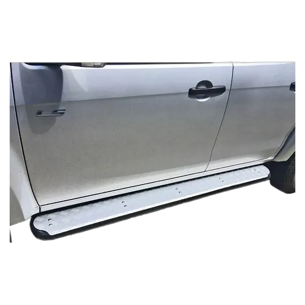 50mm thick satin black tube with anodized alloy top tread plate side Steps To Suit.