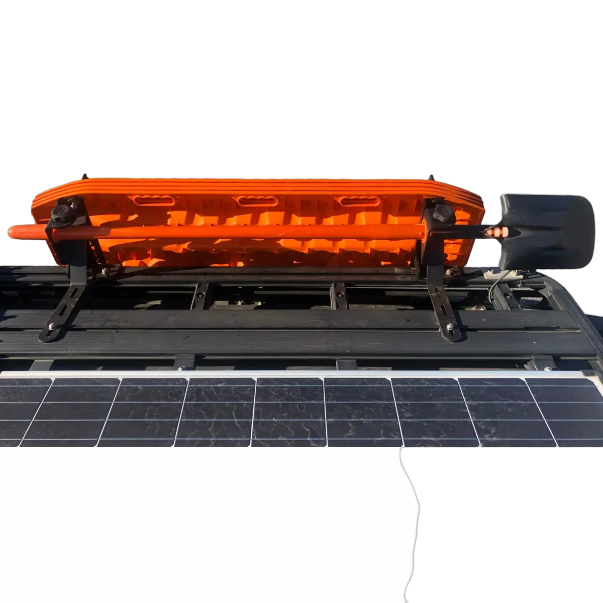 The MAXTRAX Roof Rack Mount is designed to save space for your bulky camping gear or rooftop tent by mounting your MAXTRAX on the side of your roof rack. The Mount can securely carry 4 MAXTRAX MKII, 4 MAXTRAX XTREME, or a pair of each, plus a long-handled shovel.