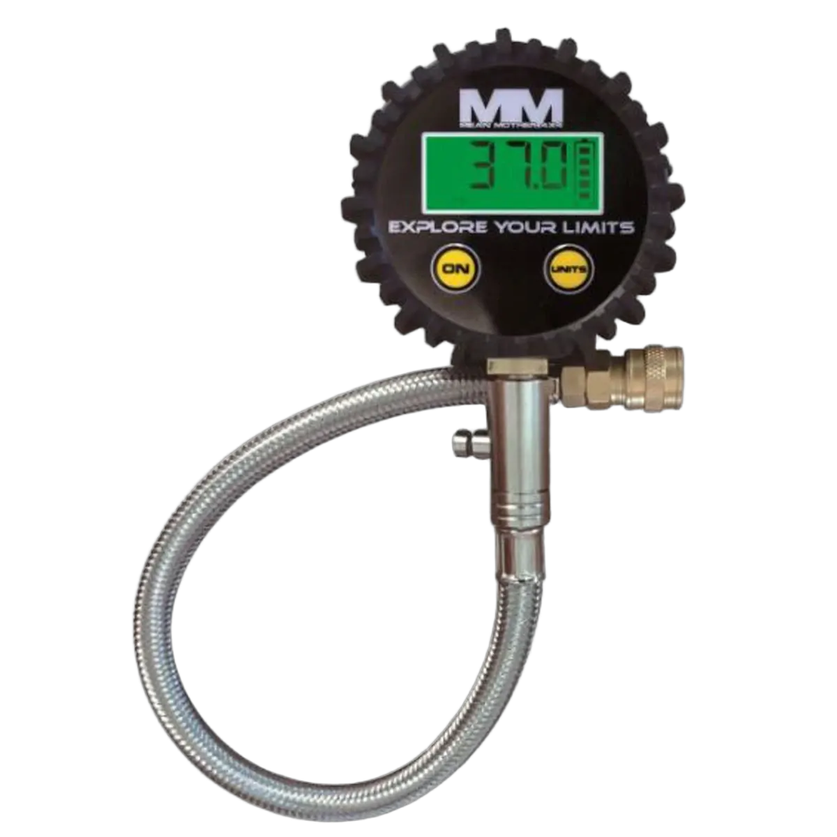- Displays psi, kPa, and Bar pressure