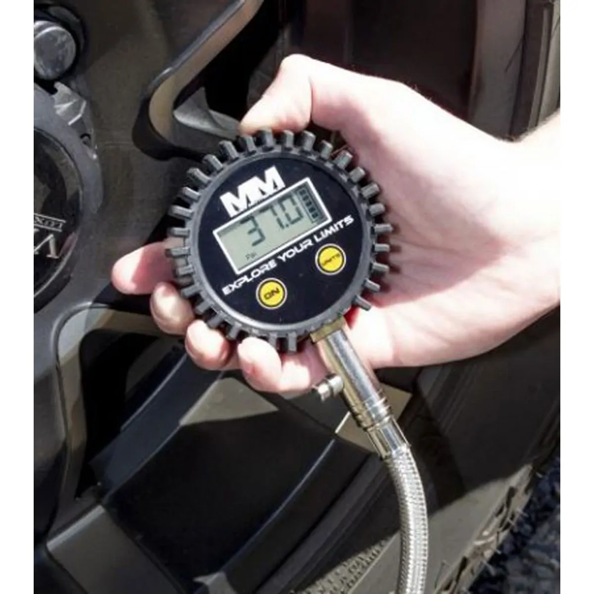 Reducing your tyre pressure is a big part of going off-road; it increases the tyre footprint, which greatly improves your traction and reduces the chance of getting bogged in soft, muddy, or sandy conditions.