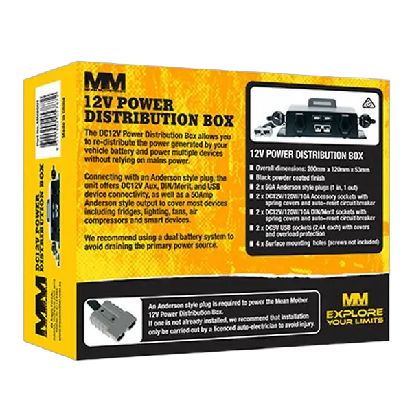 The DC12V Power Distribution Box allows you to re-distribute the power stored in your auxiliary battery and power multiple devices, without relying on mains power.