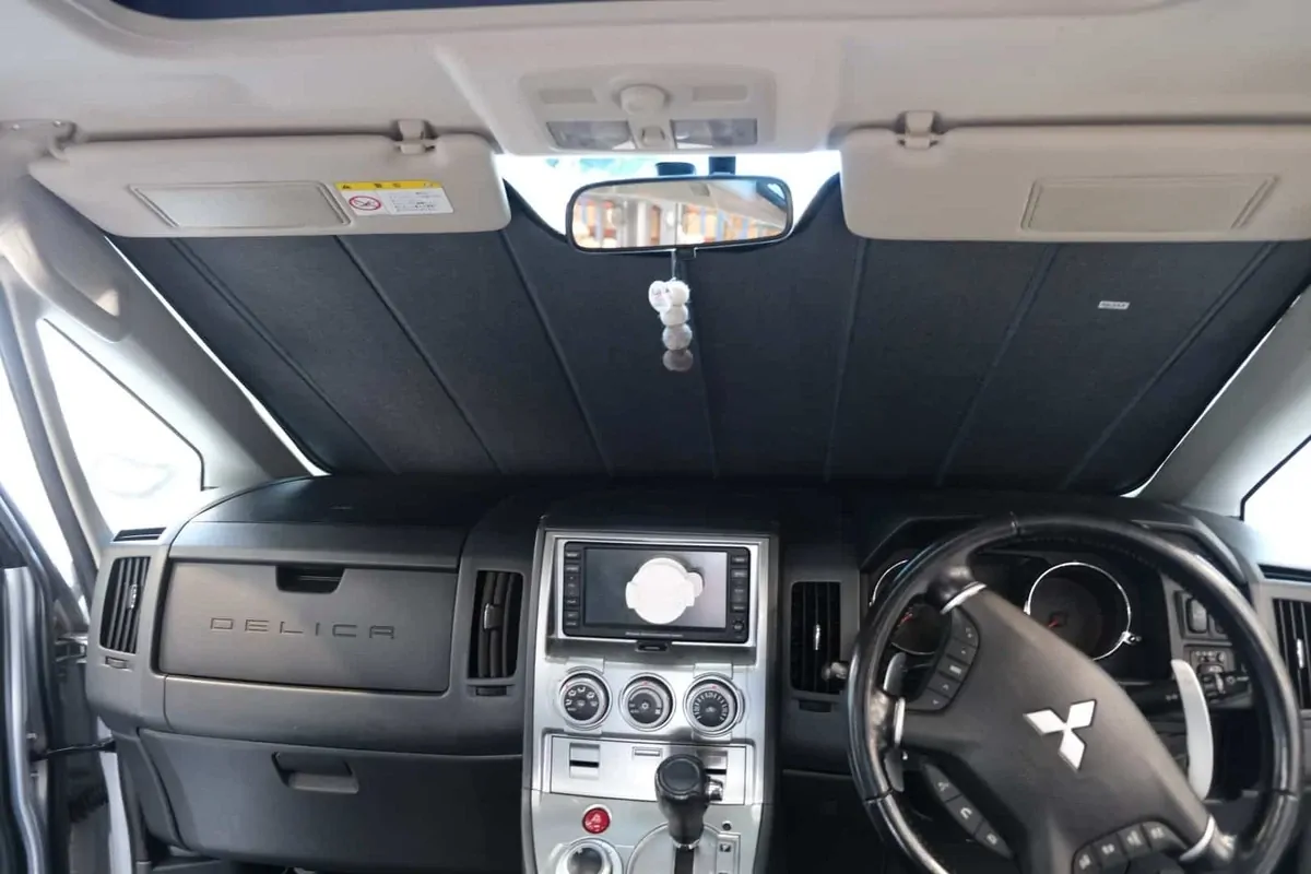 Note: Our custom sun shades block out a significant amount of light and UV rays that enter from the front windscreen, however due to the angle of the front windscreen and additional sensors or different mirror shapes/sizes available for different models, there may be slight gaps around your rear-view mirror or sides to allow the sun shade to fit.