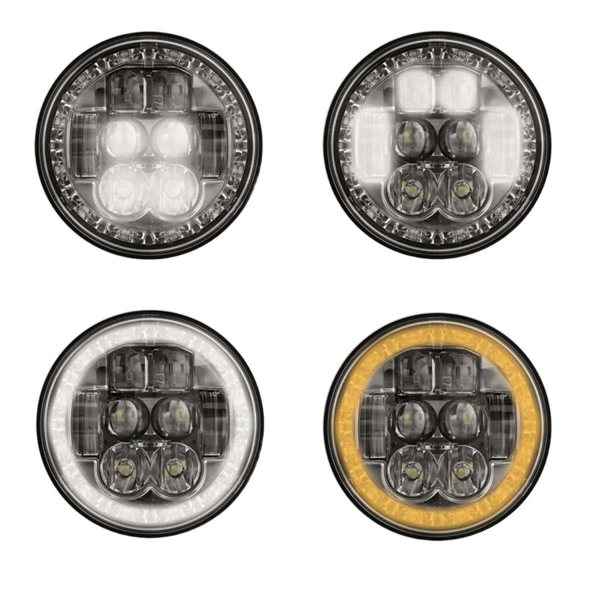 Amber in color, the new turn signal is designed in the outer ring of the lamp to display a flashing circle when in use. This unique-looking headlight features high and low beam, as well as a daytime running light (DRL) & front position (FP) functions. The Model 8631 Evolution LED headlight offers a powerful LED upgrade option for 5.75″ (PAR46) sealed beam headlights.