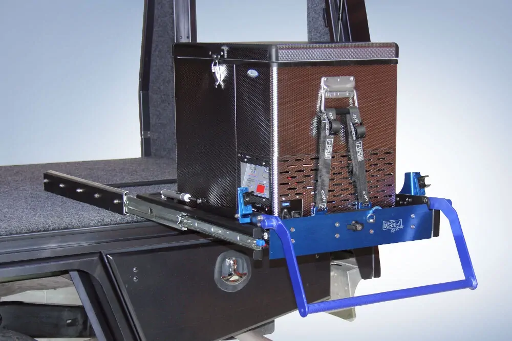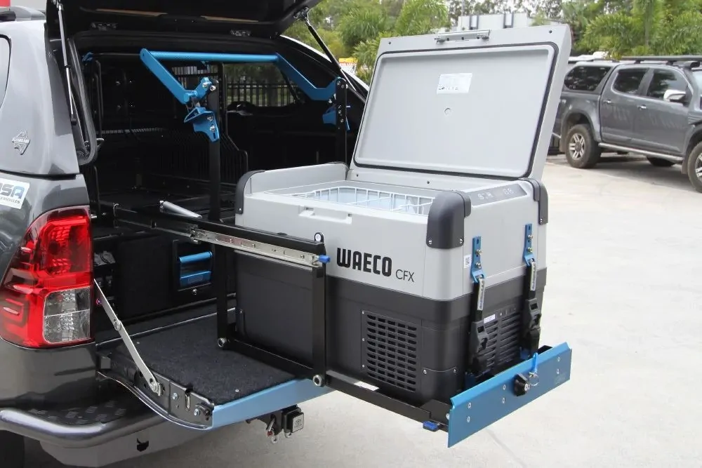 MSA 4X4's DS45 Fridge Drop Slide is an innovative, patented design which allows you to safely lower your fridge, providing easy, convenient access to its contents.