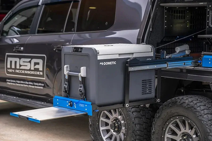 MSA 4X4 has now taken the original Drop Slide™ to the next level and completely removed all physical effort to raise and lower a fridge to an accessible height.