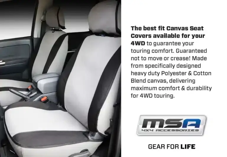 Vehicles of today are more technologically advanced than ever before, which means that even the humble seat cover must be designed to work in perfect harmony with the vehicle.When it comes to airbags and safety, everything must deploy at the same time, to one thousandth of a second accuracy. If a seat cover obstructs an airbag from deploying as intended, serious injury to the vehicles occupant(s), and compromising of an insurance policy may result.MSA 4X4 Canvas Seat Covers are FULLY Airbag Compliant and ADR certified. Through the airbag deployment testing program they were shown to not impede the factory airbags from deploying as the manufacturer intended. MSA 4X4 Accessories do not just make seat covers, we engineer them.Years of design, development and manufacturing knowledge go into every MSA 4X4 Canvas Seat Cover. Ensuring they work in perfect harmony with the vehicle’s safety features, ensuring protection of the vehicle occupants, while creating a stylish, timeless look.