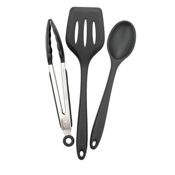 Includes: 1x Spoon 1x Spatula 1x Tongs Features: Food grade silicone coated Easily cleaned MSA branded 2 Year Manufacture's Warranty