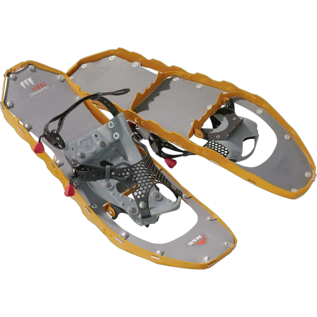 The women's Lightning Trail snowshoes are exceptionally lightweight, quiet and comfortable for all-day performance. 360˚ Traction™ frames provide serious grip and the Paraglide bindings are easy to use. The slimmer deck is ideal for anyone with a narrow gait. The pressure point-free stretch mesh securely hugs your feet and is compatible with nearly any footwear. MSR snowshoes are designed, engineered and made to exacting standards in the USA with the highest quality U.S. and imported materials to perform reliably in winter conditions.