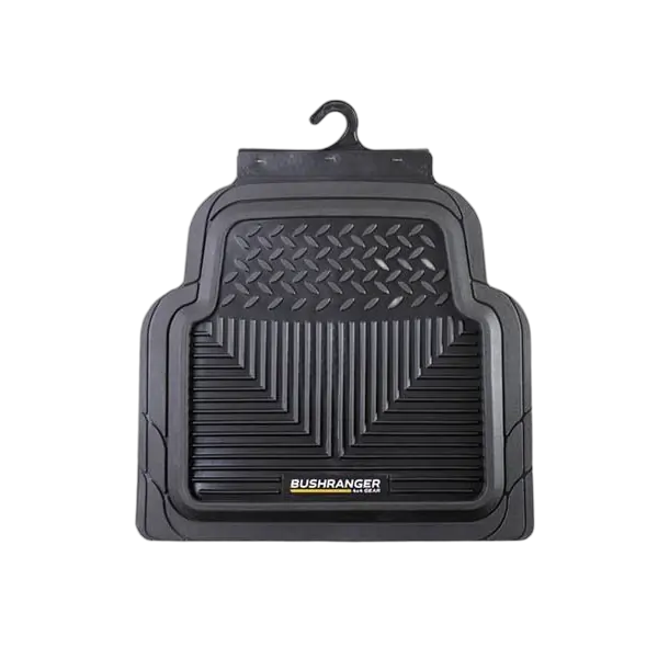The Bushranger® Mud Tamer Floor Mats are designed with deep edges to capture all the debris that is brought into the vehicle, from sand, dirt, mud, snow, even water can be contained within the mats. Made from a solid rubber construction that retains integrity and shape and easy to clean. A high perimeter ridge to keep debris enclosed from your interior material. The underside of mat features pips to prevent mat slippage. Generous size, they can also be trimmed to suit your foot well. Black. 3 Year warranty.