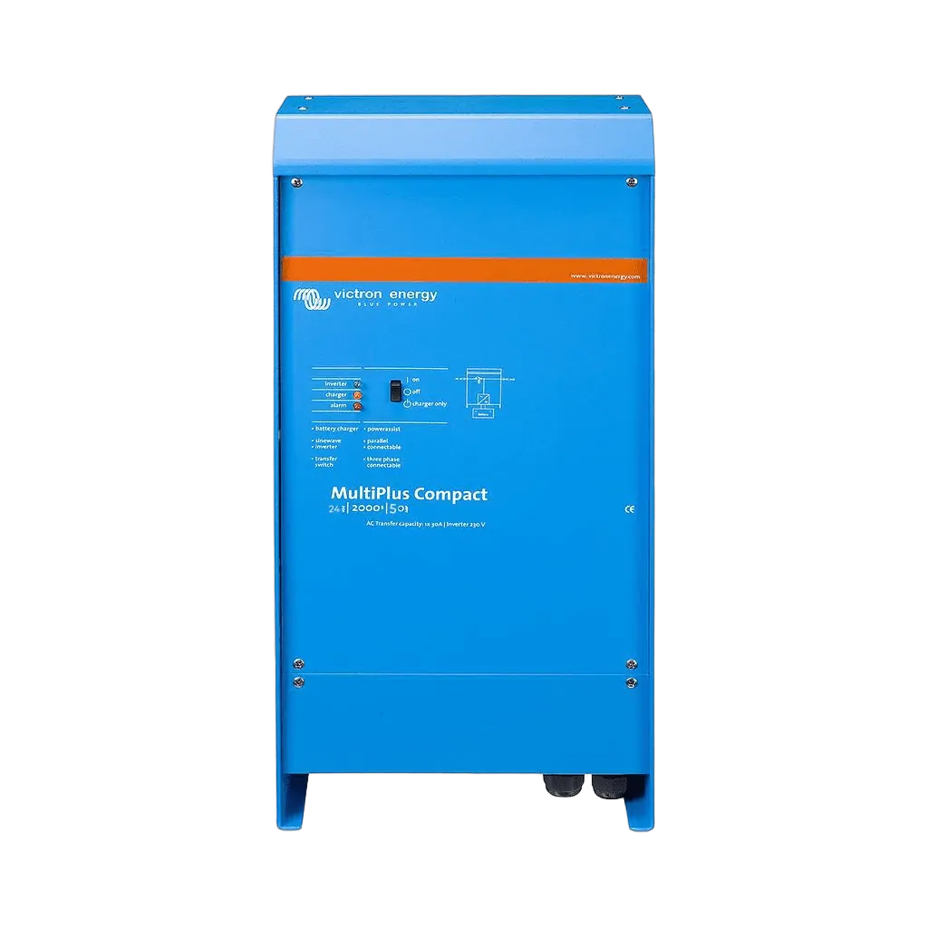 Virtually unlimited power thanks to parallel operation- Up to 6 Multis can operate in parallel to achieve higher power output. Six 24/5000/120 units, for example, will provide 25 kW / 30 kVA output power with 720 Amps charging capacity.