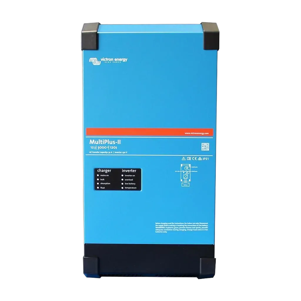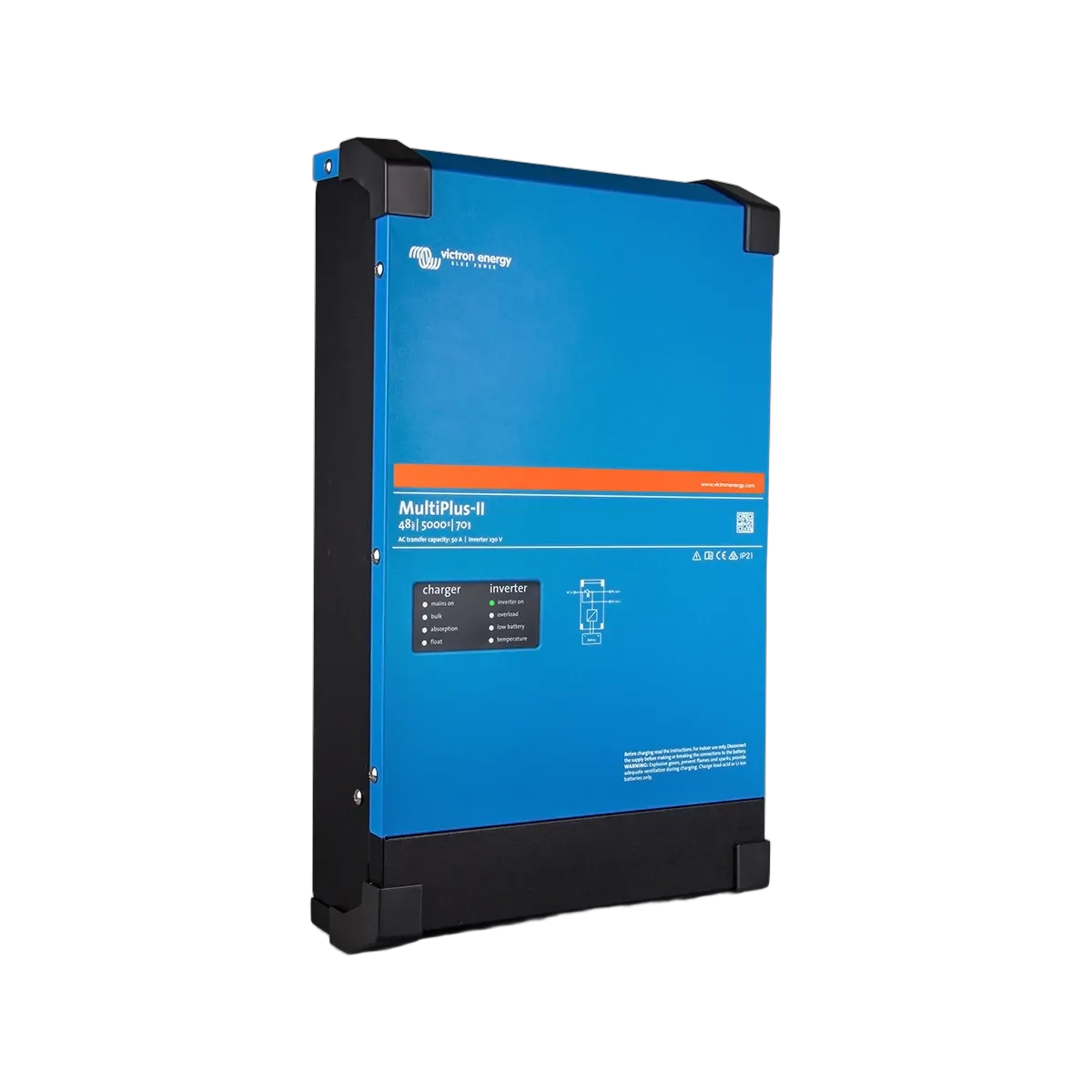A MultiPlus, plus ESS (Energy Storage System) functionality- The MultiPlus-II is a multifunctional inverter/charger with all the features of the MultiPlus, plus an external current sensor option which extends the PowerControl and PowerAssist function to 50A resp. 100A. The MultiPlus-II is ideally suited for professional marine, yachting, vehicle and land based off-grid applications. It also has built-in anti-islanding functionality, and an increasingly long list of country approvals for ESS application. Several system configurations are possible. For more detailed information see the ESS Design and configuration manual.