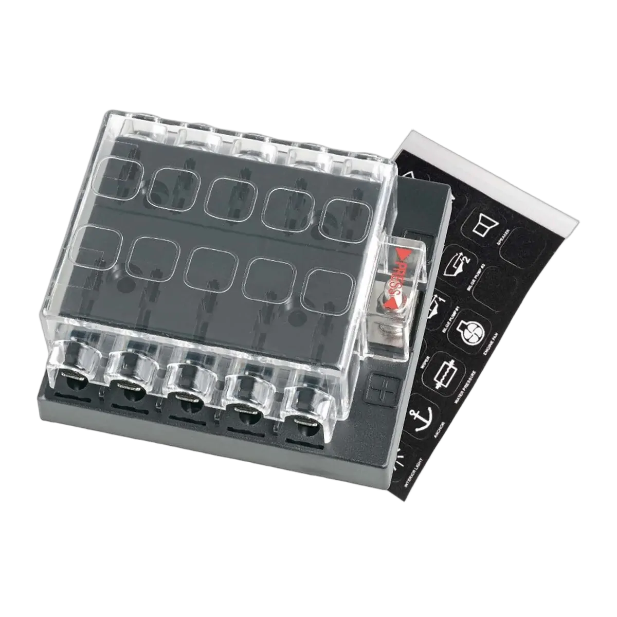 COMPRISES Transparent Cover; Single power-in terminal; Circuit identification stickers for commonly fused accessories;