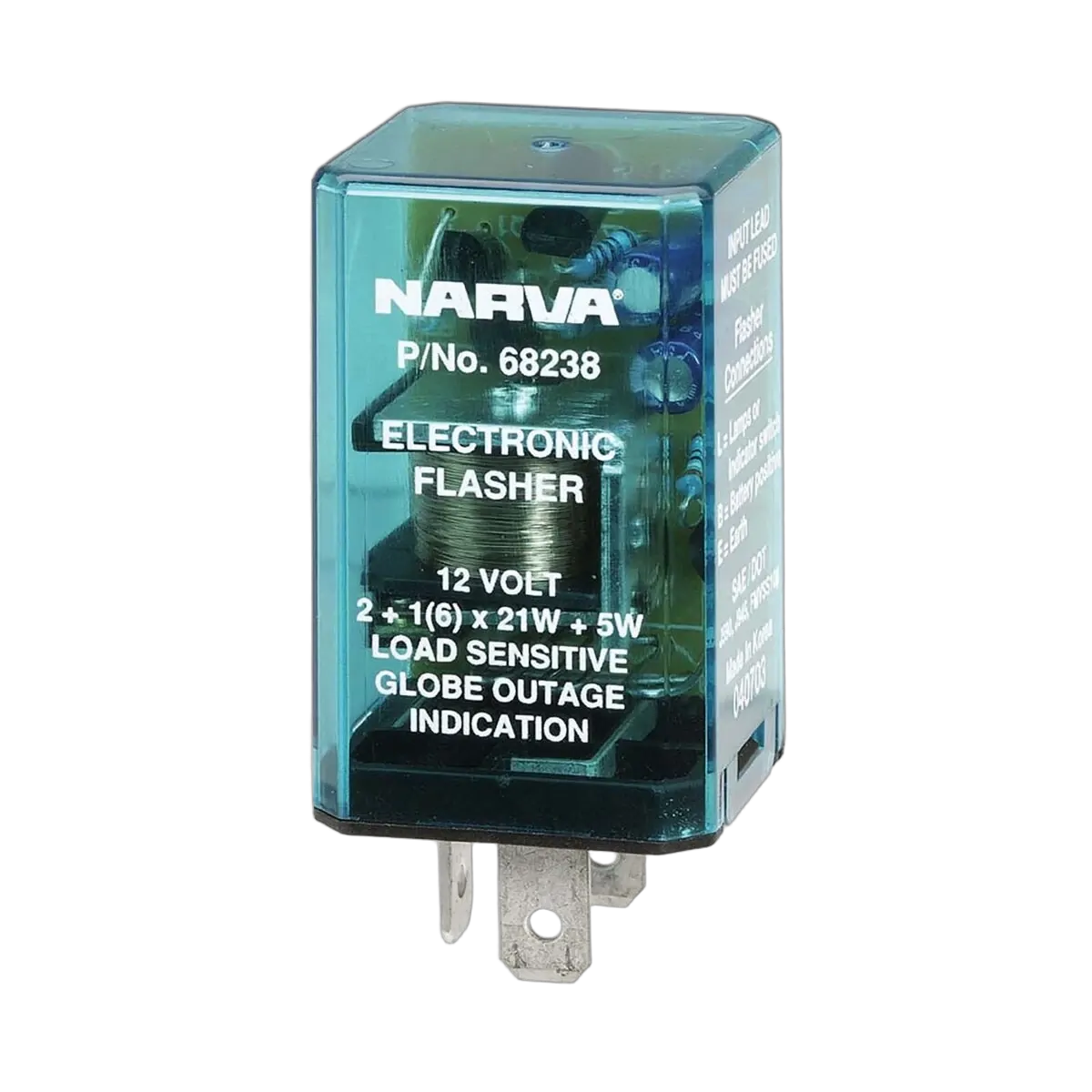 Suitable for indicator and hazard warning systems. Load sensitive type. Globe outage indication. Maximum load: 6 x 21 watt globes + additional 5 watts