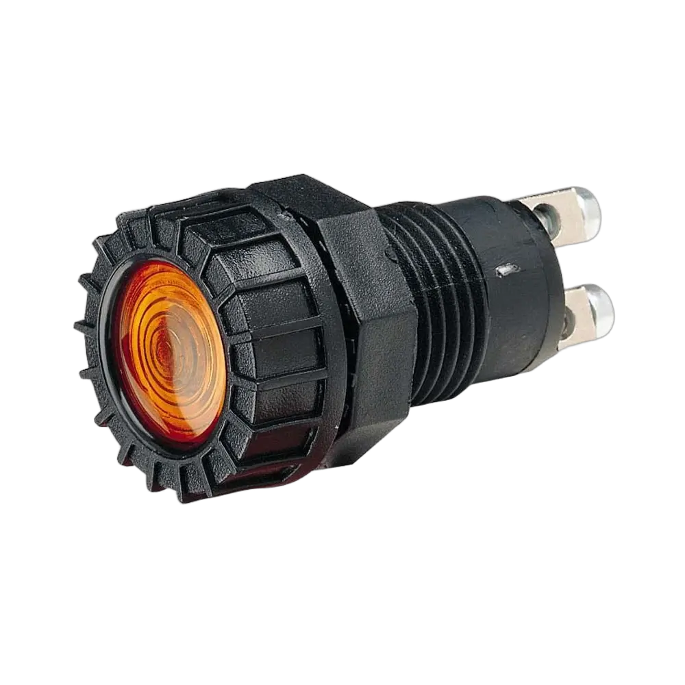Screw terminals Amperage rating 0.14A at 12V Fitted with P/No. 47230 12V globe Mounting opening 17mm dia. (use globe P/No. 47234 for 24V applications)