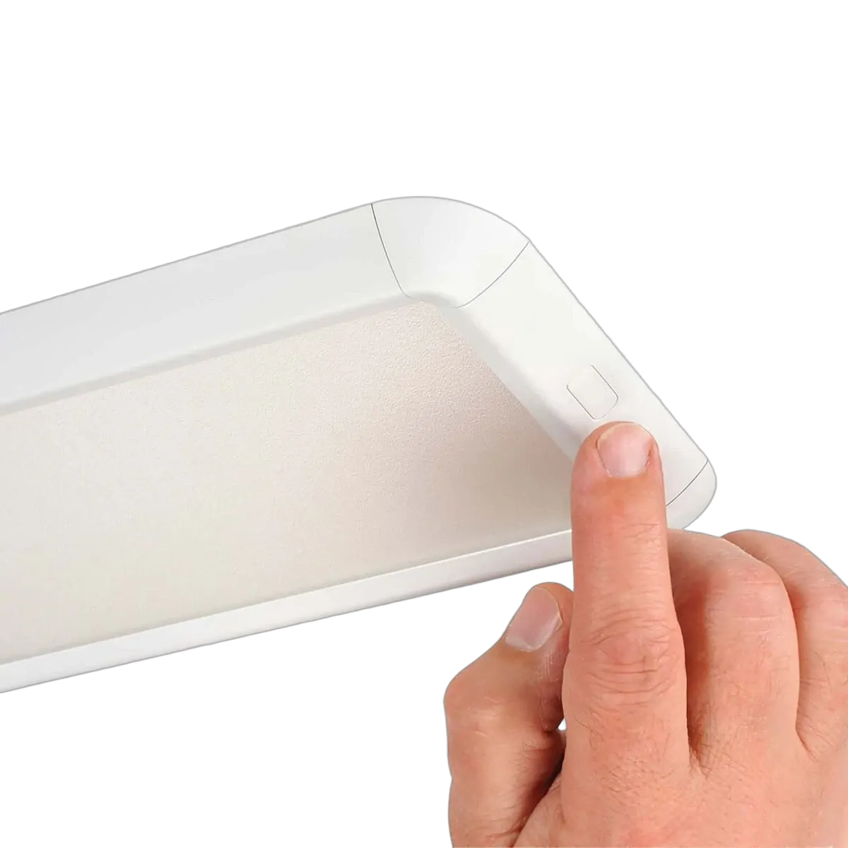 An elegantly styled light panel delivering a smooth and uninterrupted light source via high powered L.E.Ds and multi-layered diffuser lenses