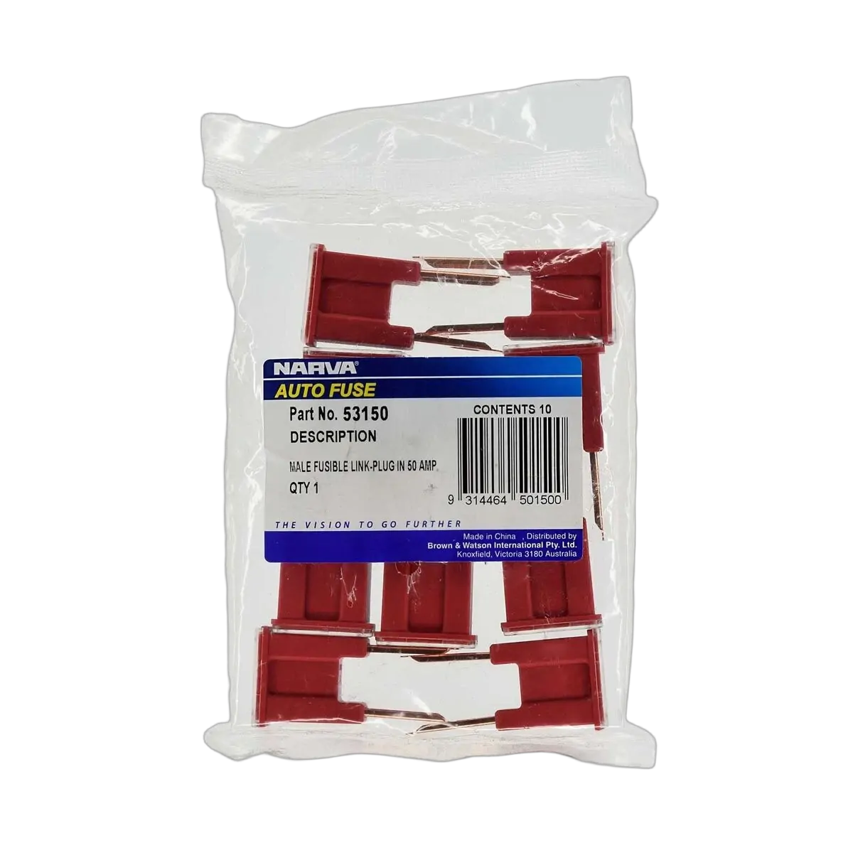 Narva 50 Amp Red Male Plug In Fusible Link (Box Of 10)